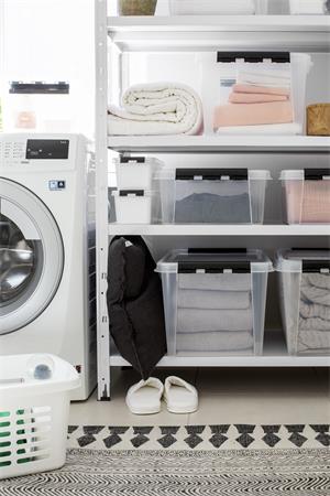Műanyag tárolódoboz, 47 liter, fekete fogantyúkkal, SMARTSTORE "Classic 45", átlátszó