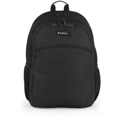 Hátizsák, iskolatáska, notebook tartóval, cipzáras, GABOL "Wolf", fekete