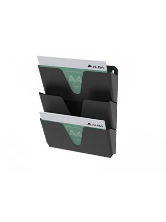 Prospektustartó, fém, fali, fekvő, A4, 3 rekesz, ALBA, fekete