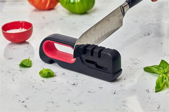 A háromlépéses (durva, közepes és finom) élezési folyamat néhány pillanat alatt professzionális szintű élességet eredményez.